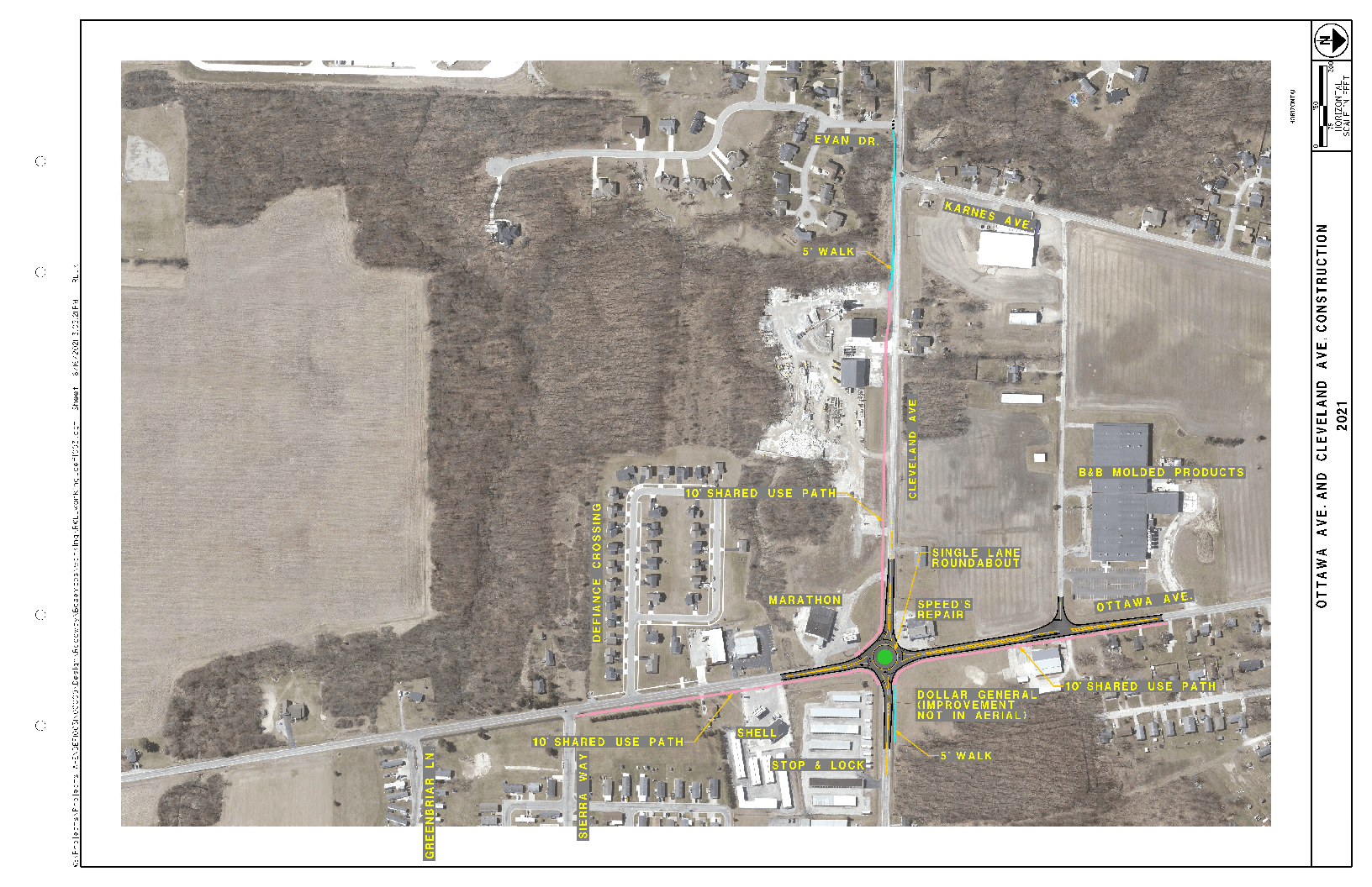 Construction of a single-lane roundabout based on the recommendations of the Ottawa Avenue Feasibility Study completed by Mannik and Smith Group, Inc. in 2016. Funding through ODOT Safety Program and ODOT Small Cities Program.